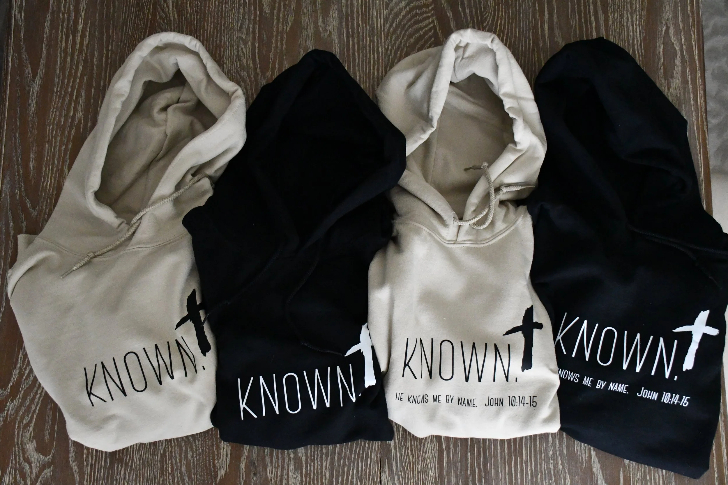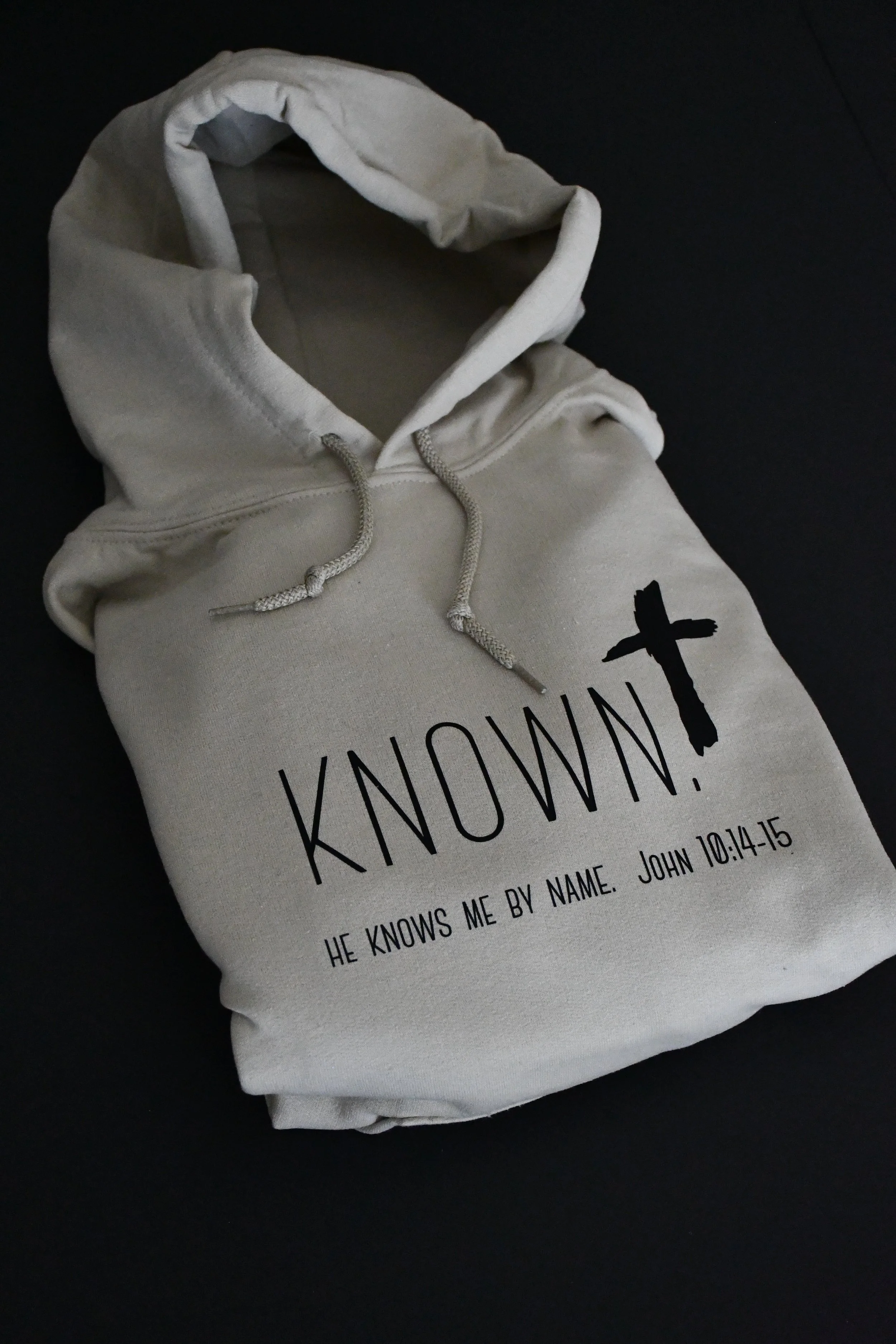 We are KNOWN and loved by God. In John 10:14-15 Jesus words explain how we are known by God through Him. We designed our apparel so you can represent your Faith in Christ and let people know they are known by God just as you are. We ultimately want our apparel line to be a way for you to create conversations with others!